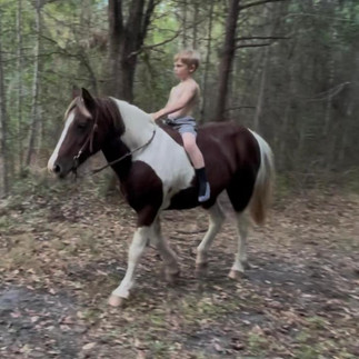 Boomerang is a 14-year-old, 12.3hh (50-inch) stout-made pony that looks like a small draft horse—he’s got plenty of bone, big feet, and the kind of build you don’t often find in ponies. He has a smooth little gait and a nice, slow lope, handling like a miniature cow horse that’s always willing and responsive. Boomerang isn’t spooky and is super gentle, making him the perfect forever partner for a little kid. Prior to coming to us, he was loved by the same family for many years, and that steady, kind nature shines through in everything he does. He’ll trail ride in the front, middle, or back of the group, go in the arena, or ride bareback or saddled—however his rider wants to enjoy him. He’s even been known to swim the pond for fun! The little boy who rides him here every Sunday—despite having his own big horse—absolutely adores him, and it’s easy to see why. Boomerang comes with all the guarantees and is up to date on teeth, shoes, and feet.